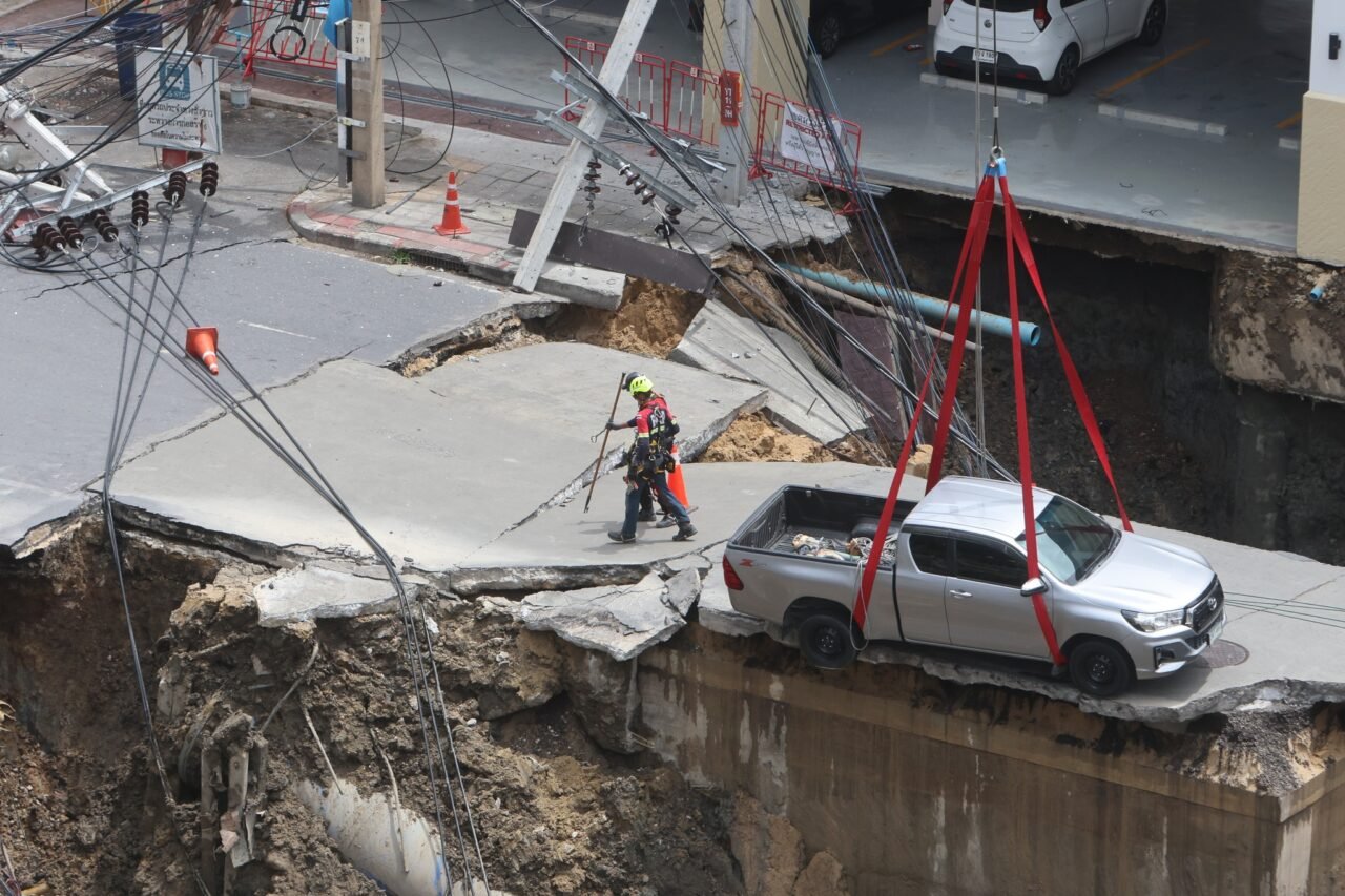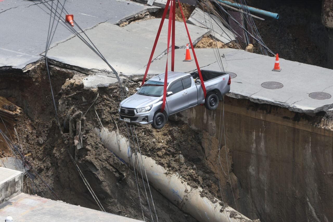 เมื่อเกิดเหตุถนนทรุดยุบตัว รถตกลงไปทำยังไง?