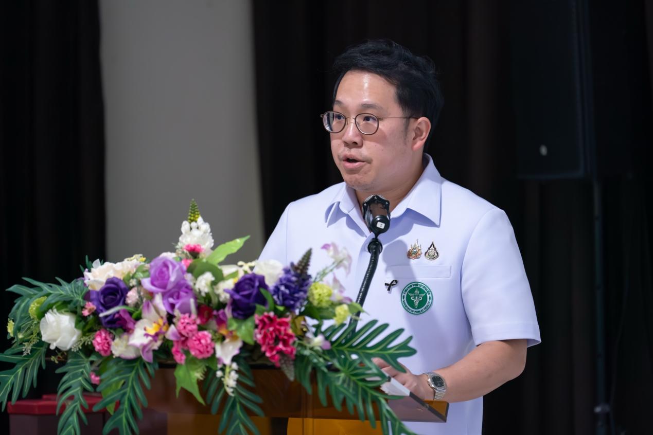 ผู้ช่วยศาสตราจารย์ ดร.พิริยะ เชิดสถิรกุล รองอธิการบดีมหาวิทยาลัยเชียงใหม่ ขึ้นกล่าวในงาน