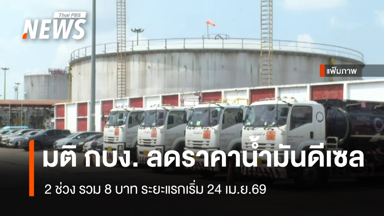 กบง.มีมติปรับลดราคาน้ำมันดีเซลหน้าโรงกลั่น 2 ระยะ รวม 8 บาท โดยระยะแรกมีผลพรุ่งนี้ 24 เม.ย.  ขณะที่ ประชาชนผู้ใช้น้ำมันรอลุ้นราคาหน้าปั๊ม วันนี้ (23 เม.ย.2569) ที่ประชุมคณะกรรมการบริหารนโยบายพลังงาน (กบง.) มีมติเห็นชอบกำหนดอัตราปรับลดราคาน้ำมันดีเซล ณ โรงกลั่นใหม่แบ่งเป็น 2 ช่วง ได้แก่ ระหว่างวันที่ 24 เม.ย.-9 พ.ค.2569 ปรับลด 5 บาทต่อลิตร และช่วงวันที่ 10 พ.ค. – 19 พ.ค.2569 ปรับลด 3 บาทต่อลิตร