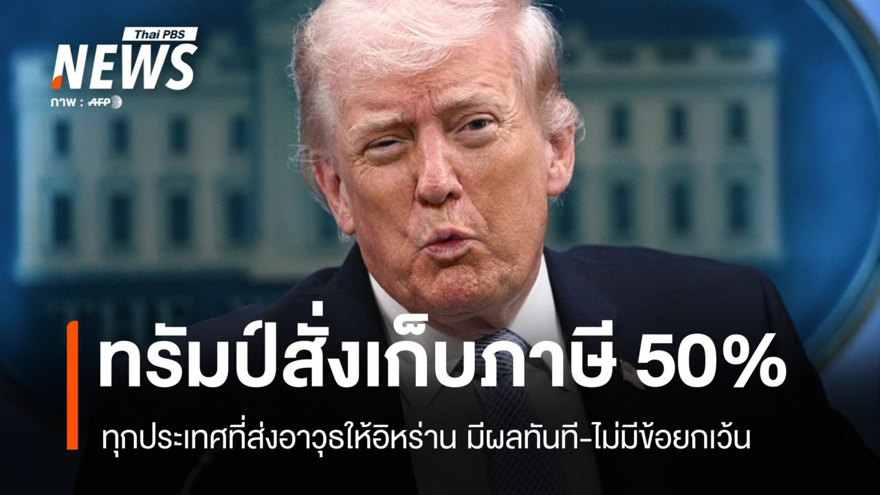 ทรัมป์ ประกาศผ่านทรูธโซเชียล สั่งเก็บภาษีศุลกากร 50% สินค้าทุกชนิดจากประเทศที่สนับสนุนอาวุธให้อิหร่านแบบไม่มีข้อยกเว้น คุยโวความสำเร็จเปลี่ยนผ่านรัฐบาลอิหร่านได้ นำไปสู่ความร่วมมือกำจัดอาวุธนิวเคลียร์ กากกัมมันตรังสีใต้ดิน แลกกับการผ่อนปรนคว่ำบาตร