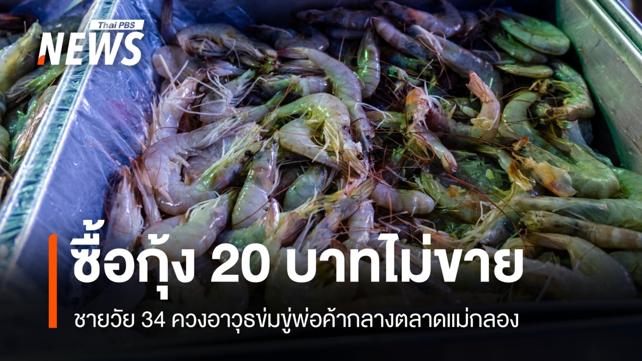 ตร.รวบชายวัย 34 ควงอาวุธข่มขู่พ่อค้ากลางตลาด หลังภรรยาซื้อกุ้ง 20 บาทไม่ขาย